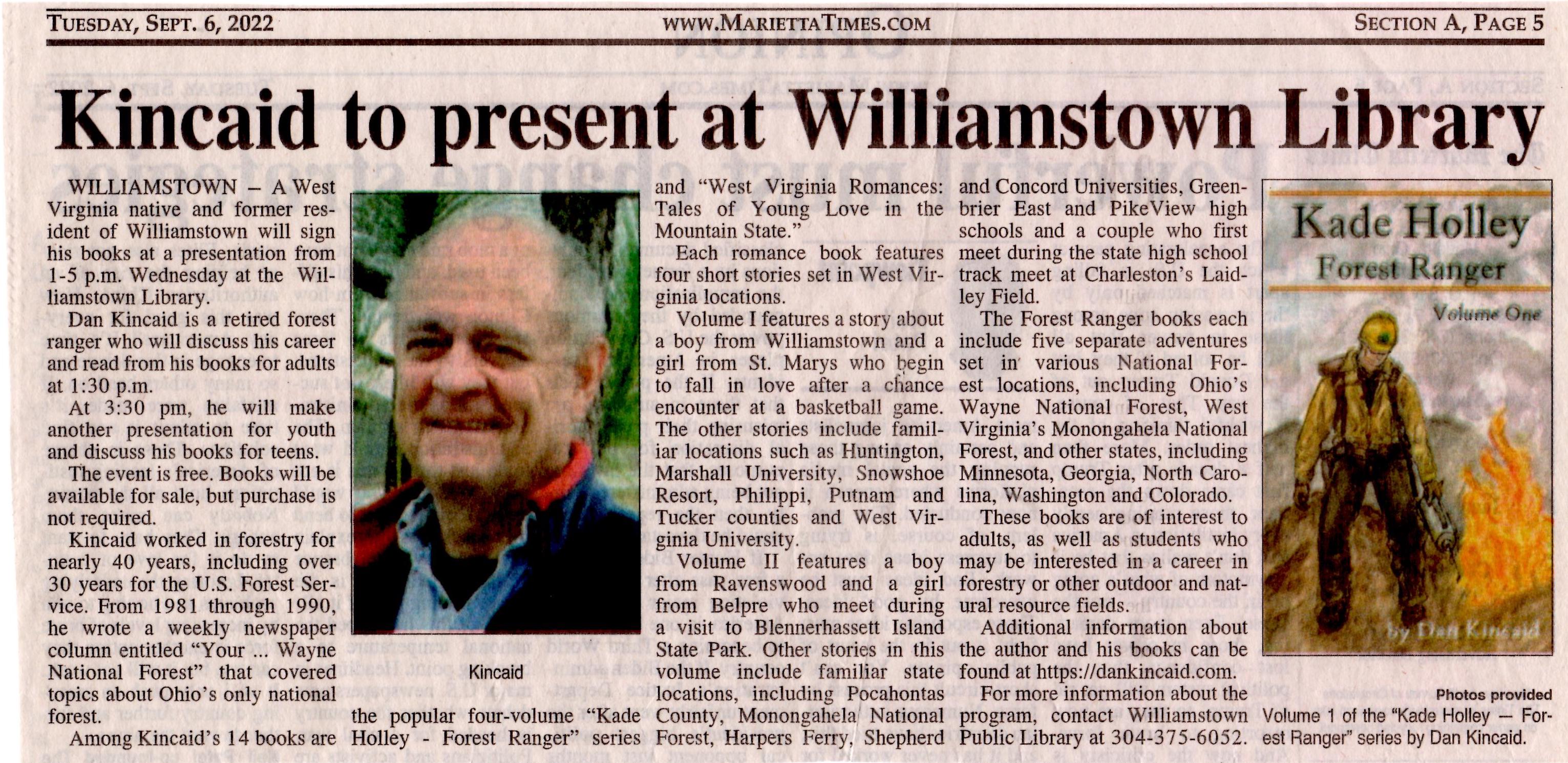 Fall, 2020 Kincaid to present at Williamstown Library Marietta Times